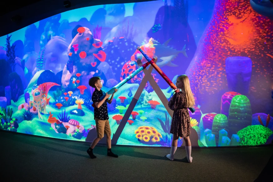 Идеальный вариант — интерактивные зоны, которые подстраиваются под игрока. В мультимедийных парках одна и та же зона (например, «Кидалки» или «Живые рисунки») увлекает малыша процессом оживления картинки, а ребенка постарше — набором очков и игровой механикой.